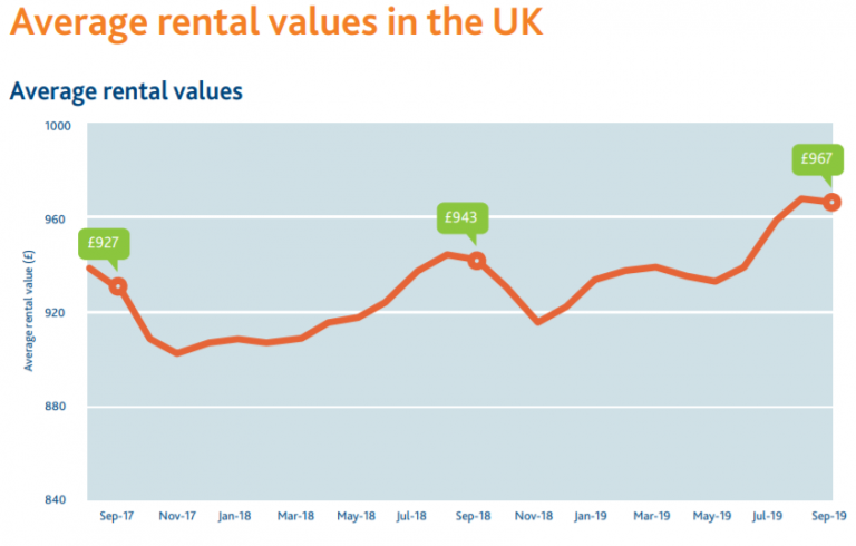 The September 2020 HomeLet Rental Index has been released indicating on their figures that the average monthly rental cost in the UK is now £987. This is an increase of 0.2% compared to August and 2.1% annually.