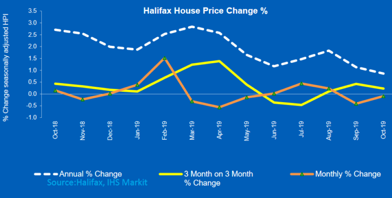 The latest Halifax Price Index has just been released showing house prices in October were 0.9% higher than in the same month a year earlier.