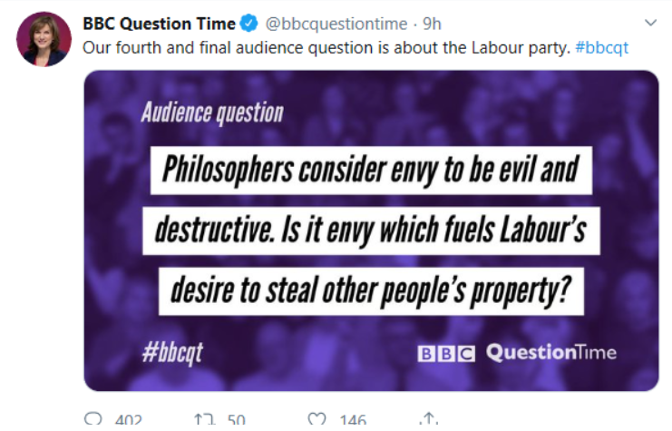 Whatever your political views, that question is horribly inflammatory. This will give more power to those that believe the BBC has a right wing bias. They can simply point to this as evidence and they would not be wrong.